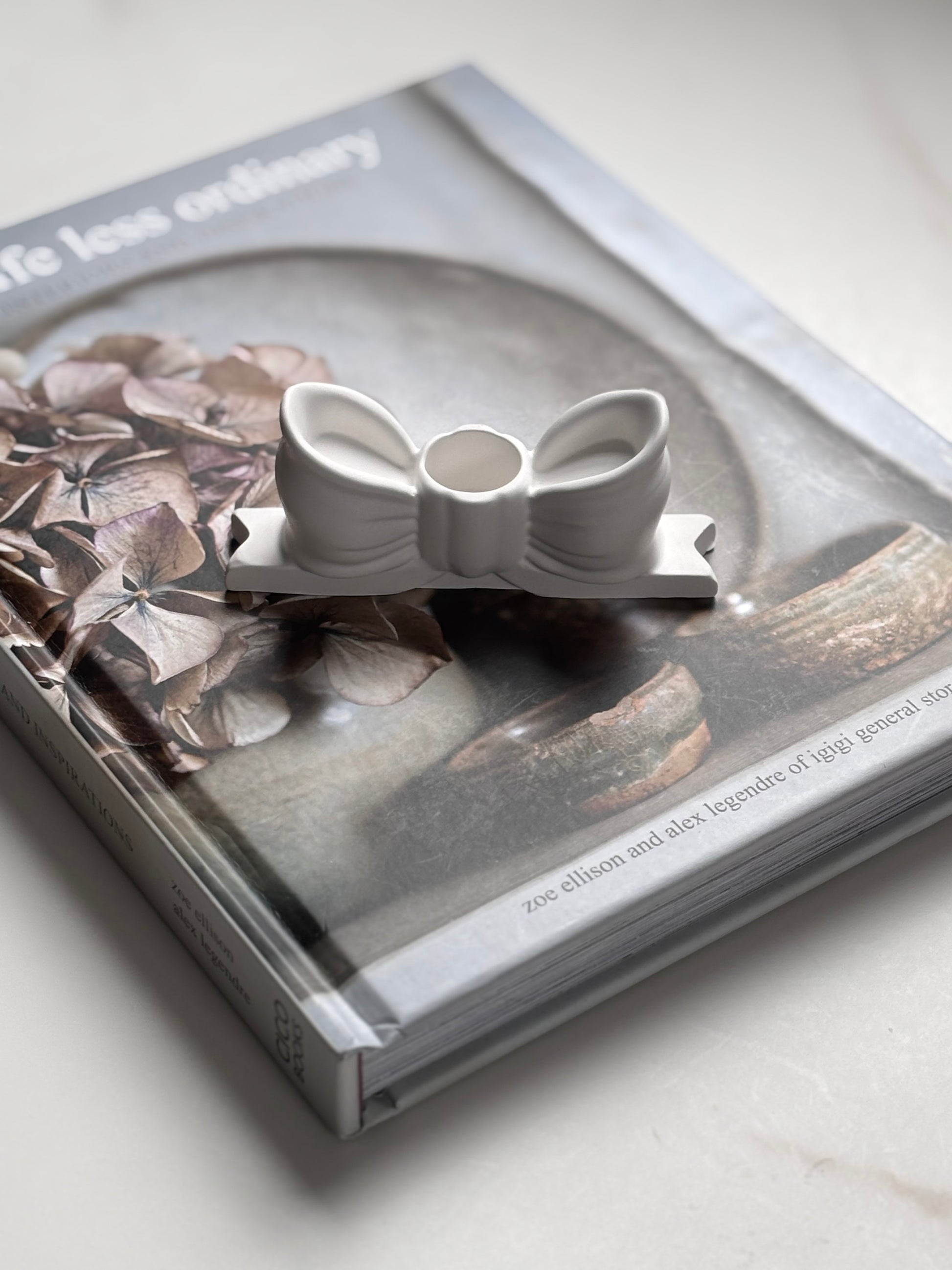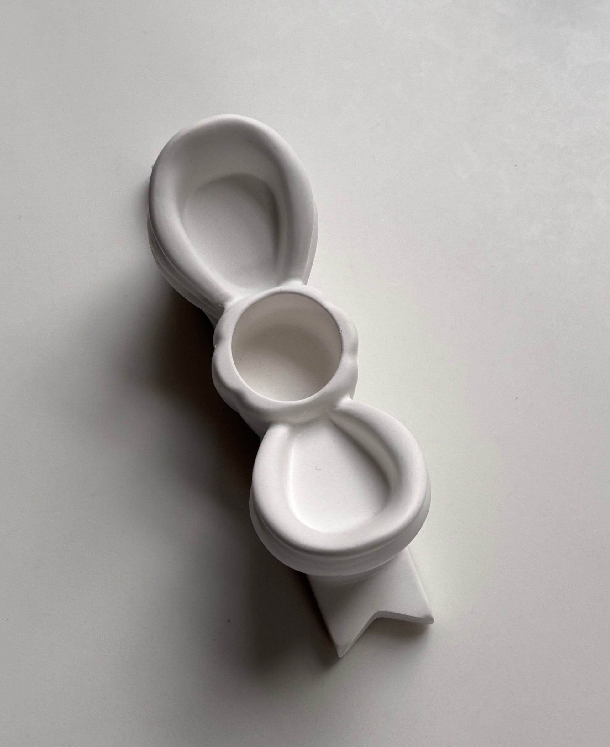 Add a touch of elegance and charm to your space with this handcrafted bow-shaped concrete candle holder. Each piece is poured, sanded, and finished by hand, giving it a smooth, matte texture and a refined sculptural look.