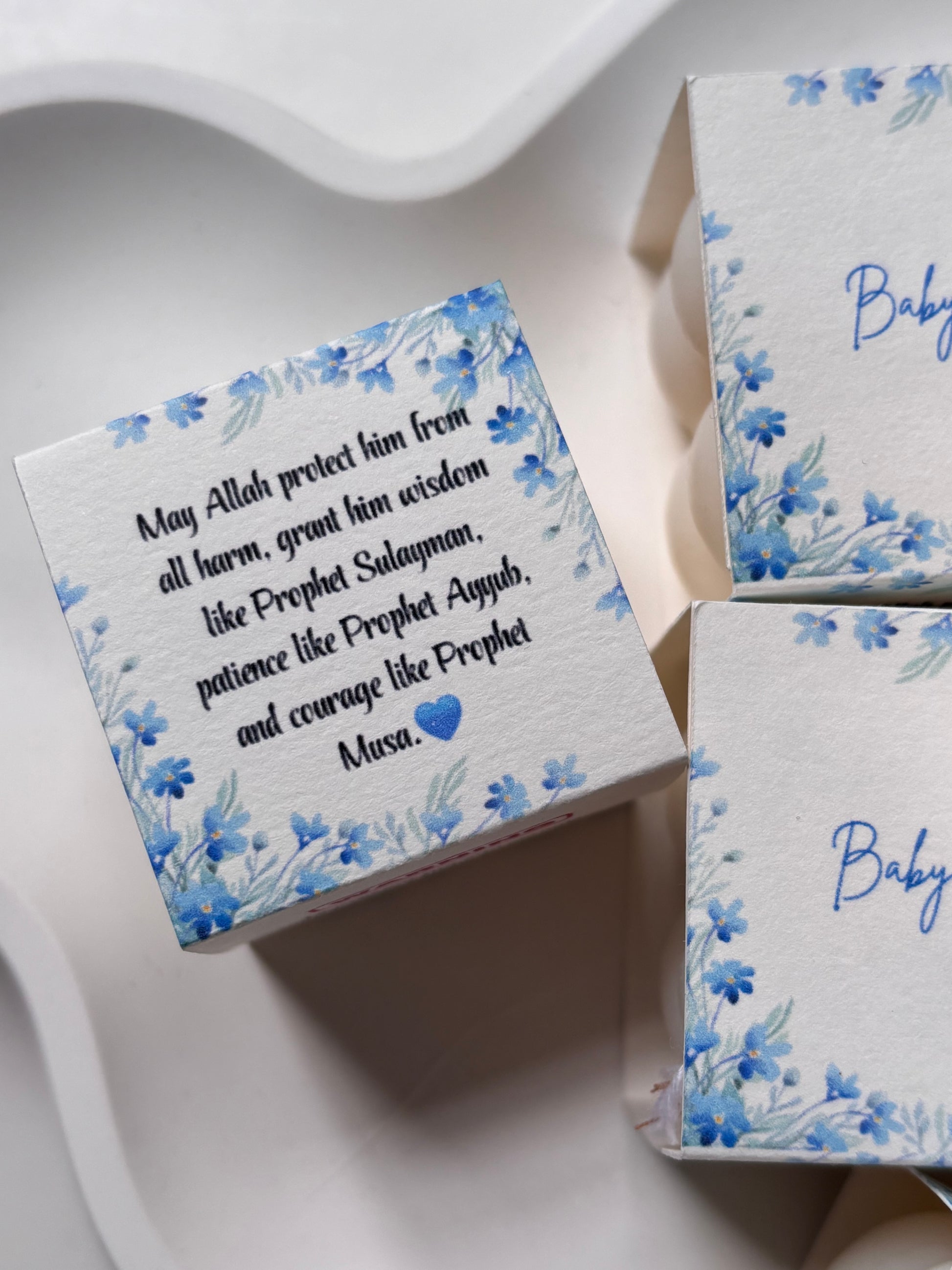 At Light Candle Co, we take pride in creating beautifully packaged Muslim Baby Boy Favors